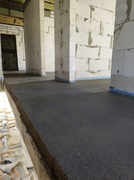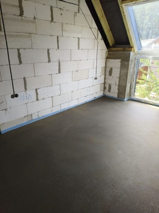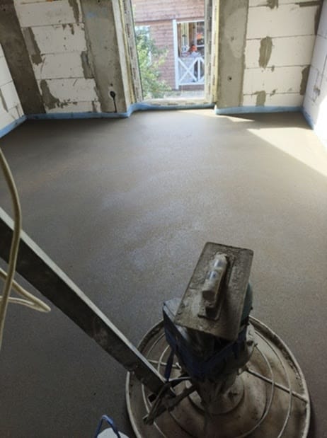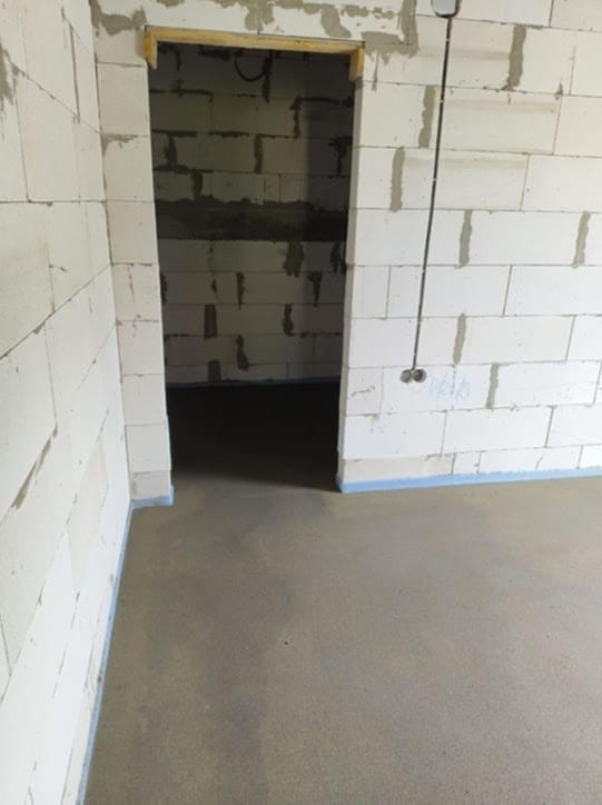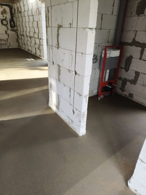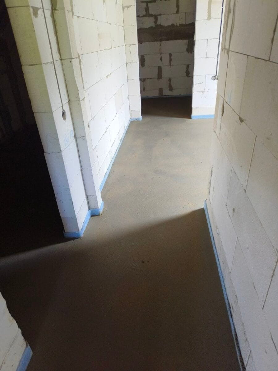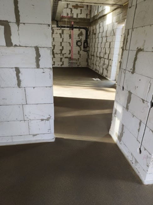 На объекте была выполнена укладка армированной фиброволокном цементно-песчаной стяжки с применением механизированных методов. После этого поверхность прошла машинную затирку для достижения ровного и качественного покрытия.