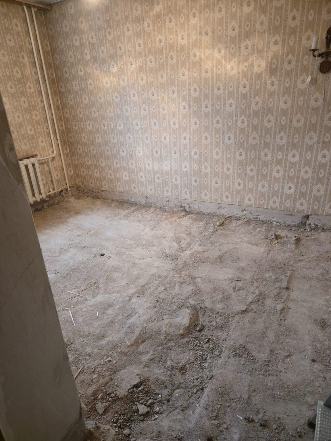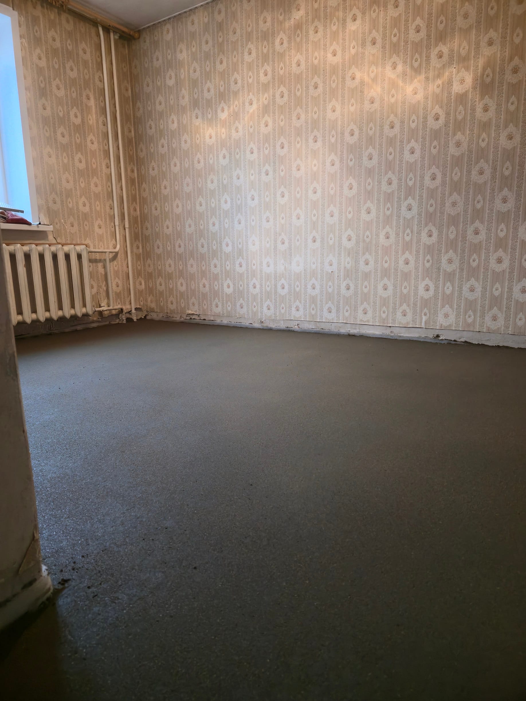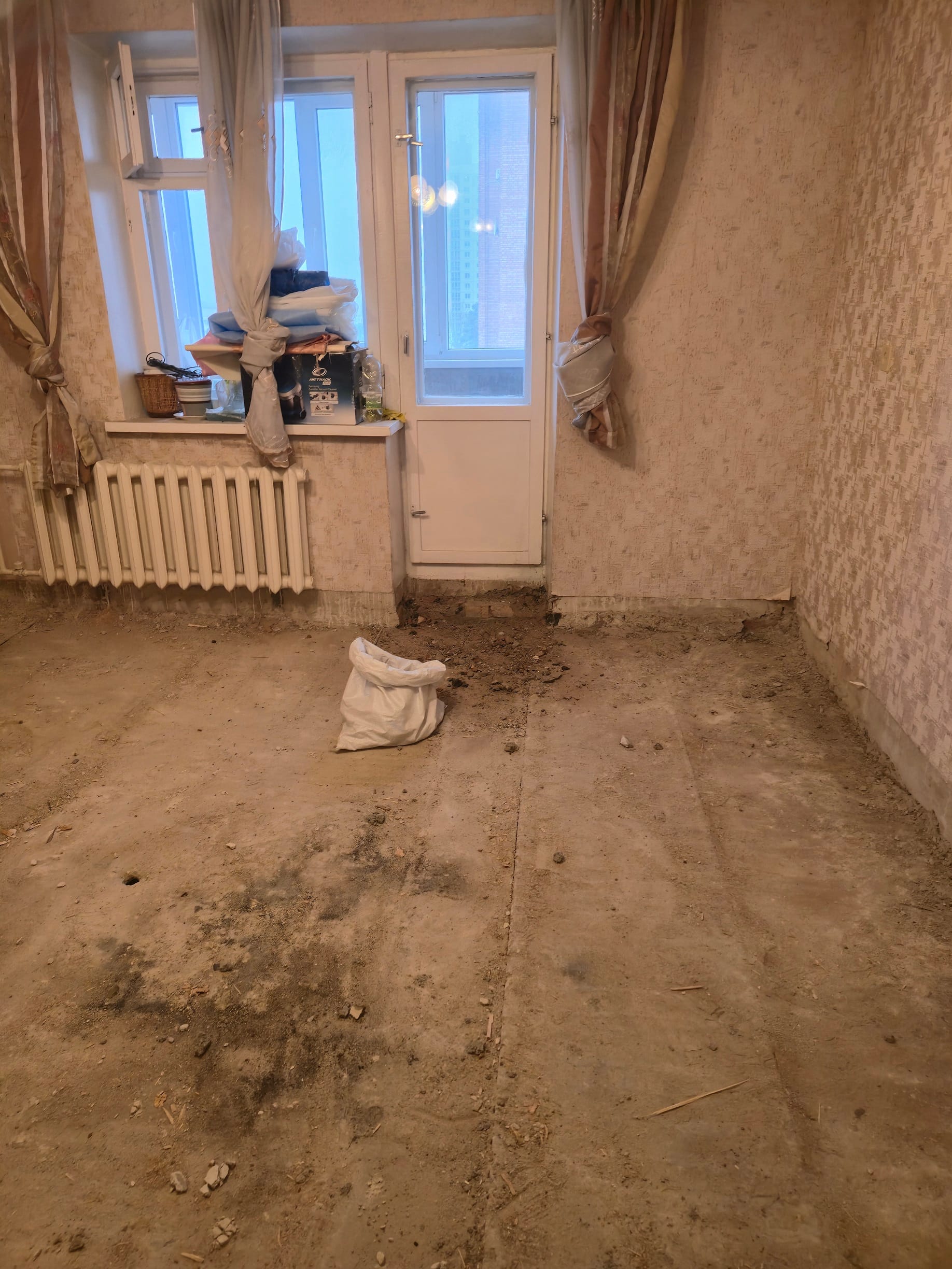 Процесс включал демонтаж старого паркетного покрытия и деревянного основания, что позволяло подготовить поверхность для дальнейших работ. После этого выполнено устройство керамзитового слоя для уменьшения нагрузки на плиты перекрытия, а также устройство цементно-песчаной стяжки (ЦПС) для создания прочной и ровной основы под новый пол. Все этапы выполнены с учетом технологических требований и обеспечивают надежность и долговечность будущего покрытия.
