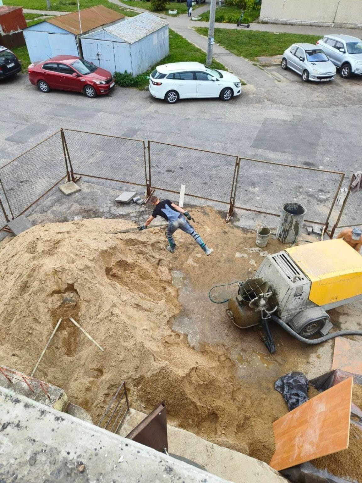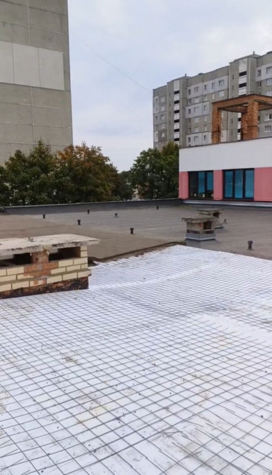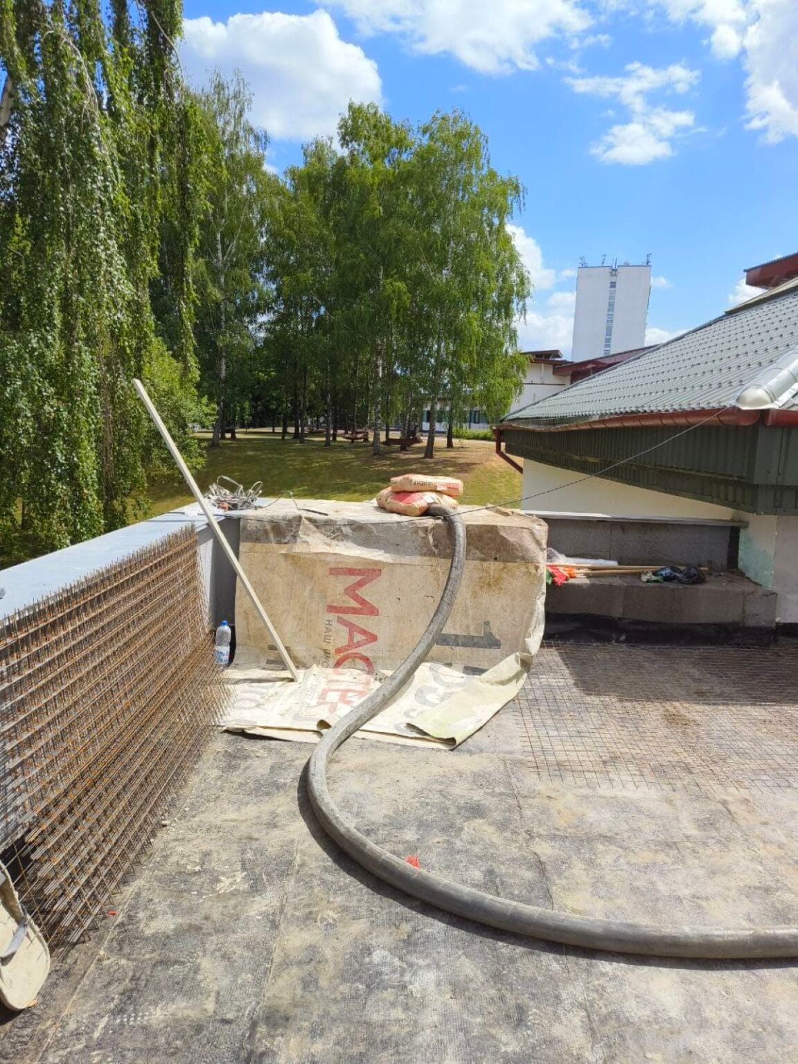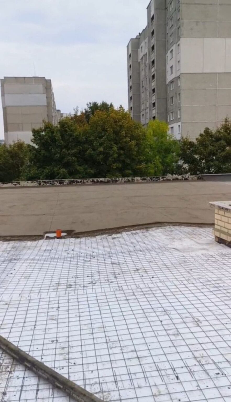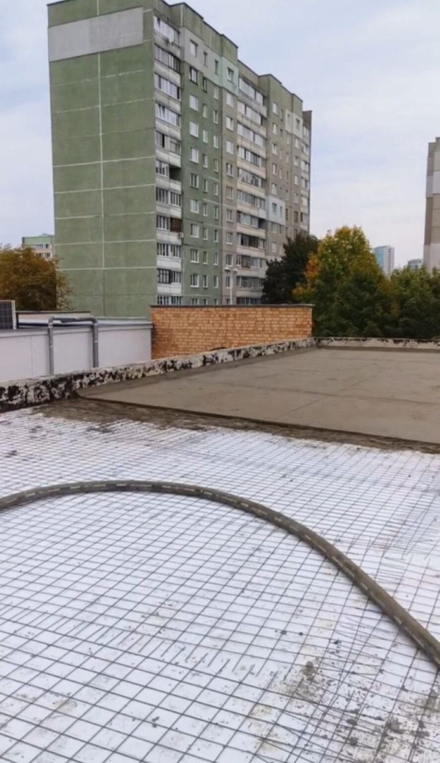 Мы успешно осуществили монтаж стяжки на крыше с учетом необходимой разуклонки, обеспечивая оптимальный сток воды и надежное покрытие.